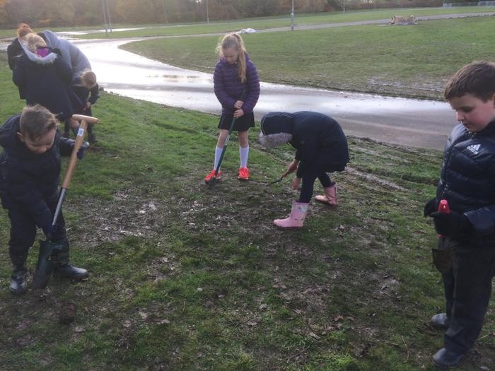 The Eco Team wore their wellies today as they took part in the Wildlife Ways project to develop green spaces in Solihull. We went to Tudor Grange Park and planted lots and lots of bulbs. They should make an appearence by May 2020