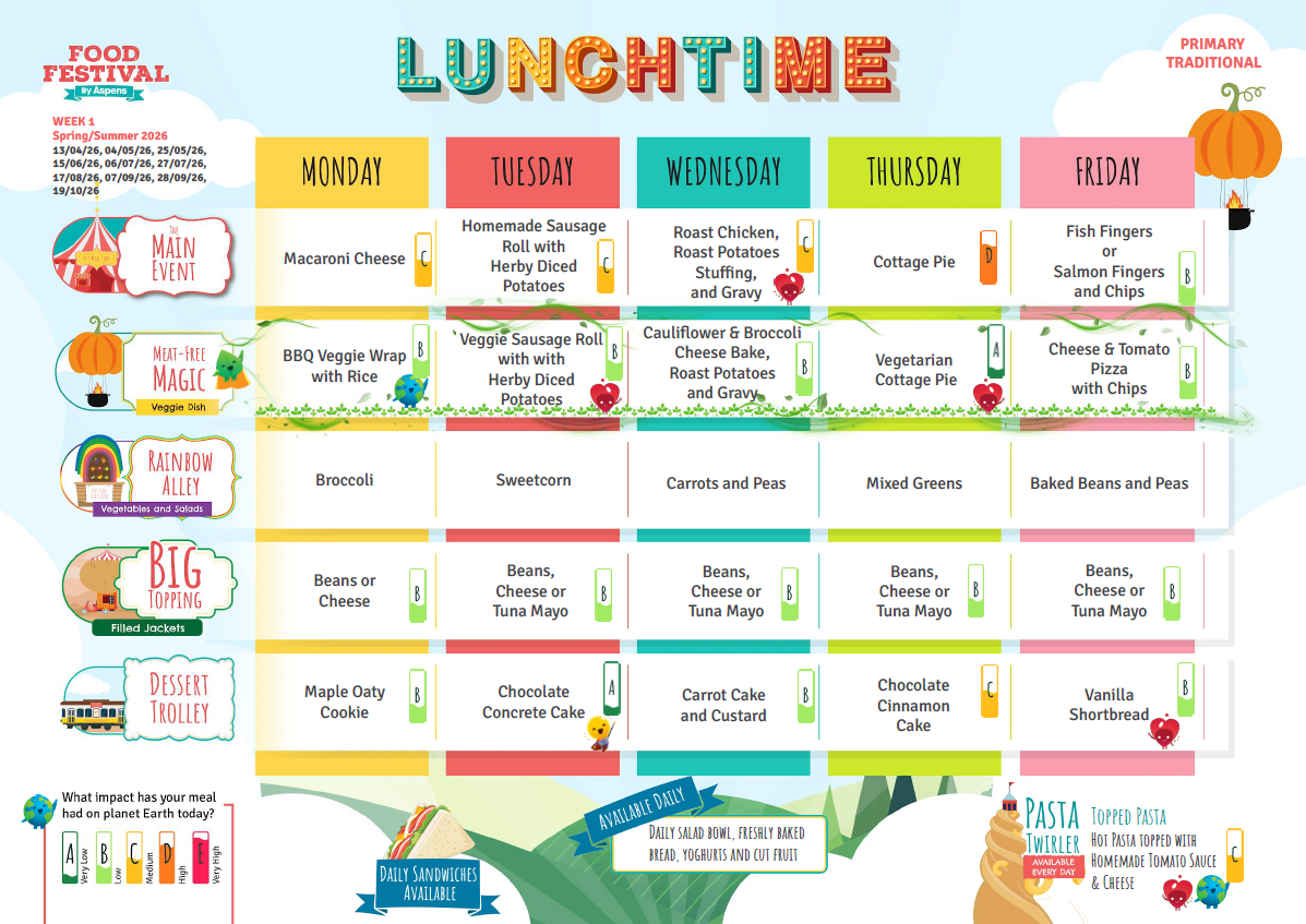 All meals must be ordered and paid for in advance through Parentpay, including Universal Infant Free School Meals (children in Reception, Year 1 and Year 2) and Pupil Premium children.