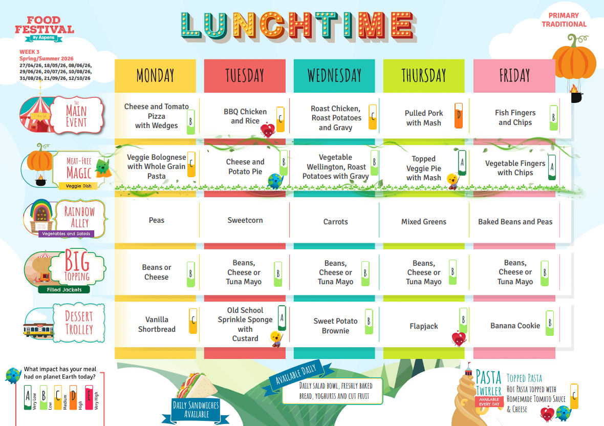 Meals can be ordered (or cancelled/amended) until 8.00am on the given day. The process to cancel is available if your child is off sick.