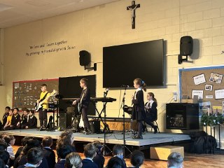 At St Augustine’s we deliver a clear and comprehensive scheme of work in line with the National Curriculum through Charanga. This is a scheme of work, which offers a topic-based approach to support children’s learning in music. A steady progression plan has been built into Charanga, both within each year and from one year to the next, ensuring consistent musical development. By using Charanga as the basis of a scheme of work, we can ensure that they are fulfilling the aims for musical learning stated in the National Curriculum. Charanga includes many examples of music styles and genres from different times and places. These are explored through the language of music via active listening, performing and composing activities, which enable understanding of the context and genre. There is a classroom-based, participatory and inclusive approach to the music learning. Throughout the scheme, children are actively involved in using and developing their singing voices, using body percussion and whole-body actions, and learning to handle and play classroom instruments effectively to create and express their own and others’ music. Through a range of whole class, group and individual activities, children have opportunities to explore sounds, listen actively, compose and perform. During music lessons, children will be given opportunities to learn music specific vocabulary in a meaningful context and will be given opportunities to apply skill and be given the chance for collaboration through composition. Year 4 learn to play Recorders throughout the year, facilitated by Solihull Music Service; while in other year groups children benefit from playing the glockenspiel. Year 5 participate in Young Voices, bringing together thousands of children from schools across the country to form one of the largest school choirs in the world. It’s a wonderful opportunity for pupils to experience the joy of singing as part of a huge choir, perform alongside professional musicians, and build confidence through music. Extra-curricular clubs, linked to Rocksteady Band (Tuesday mornings) are delivered by a specialist music teacher, which enhances the curriculum offer. The school also enable peripatetic lessons to take place across the year, delivered by Solihull Music Service - guitar, violin and keyboard. Concerts and events take place throughout the year to further inspire pupils and develop their musical and cultural abilities, whilst providing them with a platform for performance.
