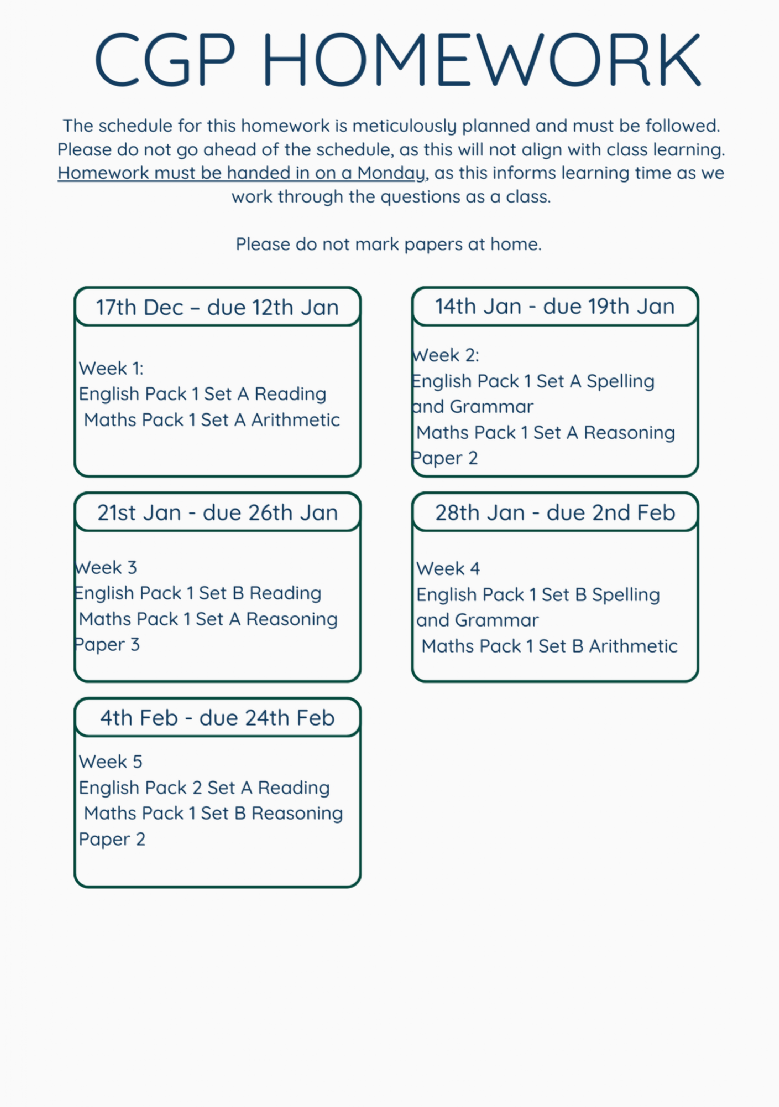 CGP Homework Schedule
